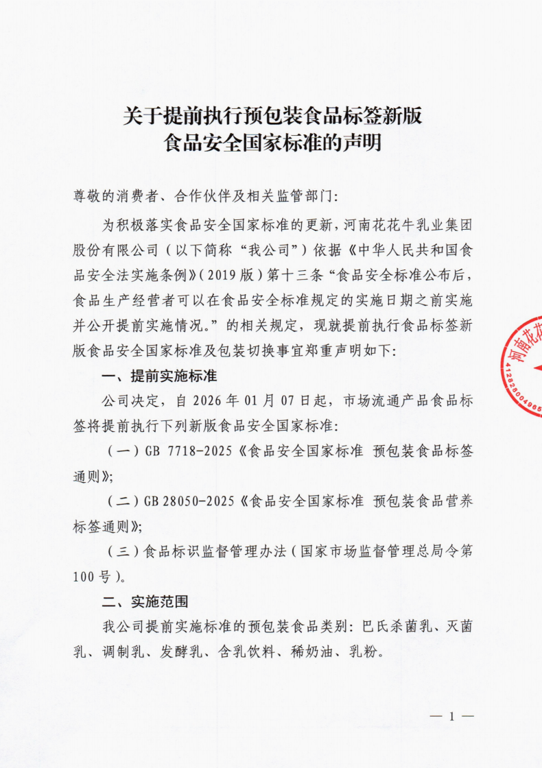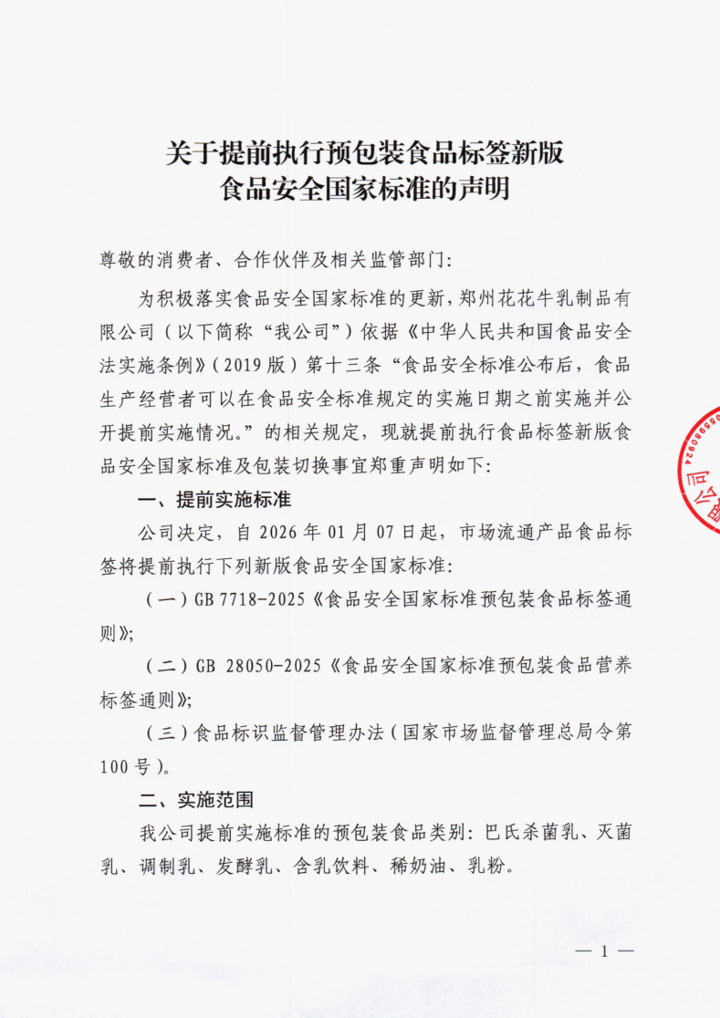 關(guān)于提前執(zhí)行預(yù)包裝食品標(biāo)簽新版食品安全國家標(biāo)準(zhǔn)的聲明